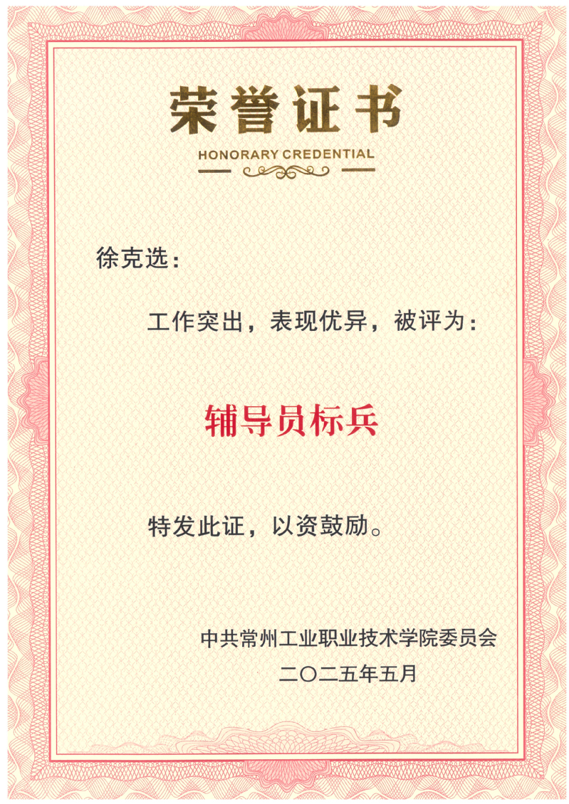 指导创业作品获江苏省第五届大学生创新创业大赛一等奖。作为班主任,所带班级学生马艳东被评为“全国劳动模范”“中国铸造大工匠”“中国机械优秀工匠”“龙城工匠”等。
