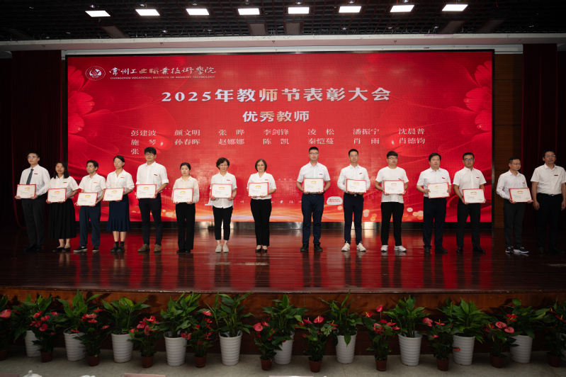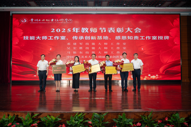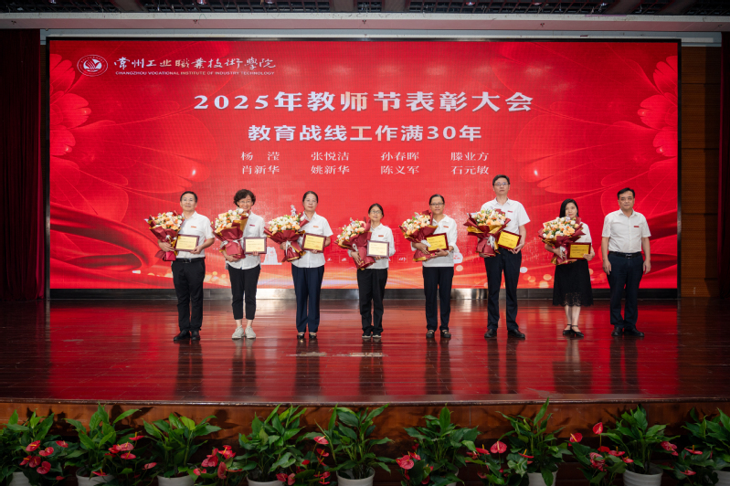 9月10日下午,我校召开“以教育家精神铸魂强师,谱写教育强国建设华章”2025年教师节表彰大会,表彰学校优秀教师、优秀教育管理工作者、“四有”好老师、教学及技能竞赛获奖教师、省级人才项目培养对象、先锋人物、教育战线工作满30年的教师,并举行教师创新团队、博士团队创新工作站以及邓建军、吴宏胜、马艳东技能大师工作室、中国工艺美术大师王晓丽传承创新基地和余美芳感恩知责工作室授牌仪式。学校全体党委委员、杰出校友代表和退二线校领导出席会议。