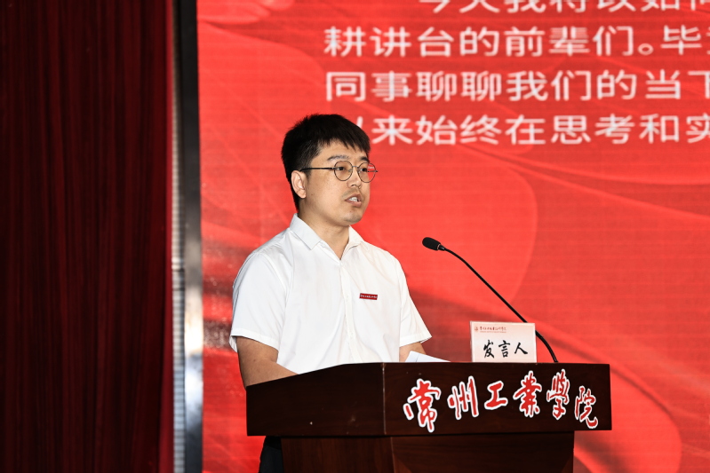 材料工程学院教师赵东作为新进教师代表发言。他表示,将以前辈为榜样,融入学校发展,坚守为党育人、为国育才初心,早日成为一名优秀的高职教师,并祝愿学校薪火相传、再创辉煌。