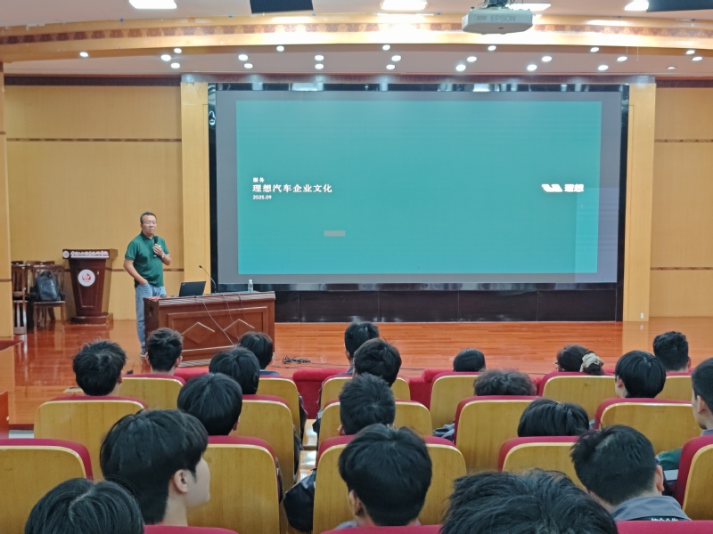 10月22日,理想汽车江苏大区直营一部部长张志胜受邀来我校进行理想汽车企业文化授课。我校机械与交通学院24级理想售后班以及24级汽车相关专业200余名学生参加了此次活动。活动由机械与交通学院党总支书记陈晓敏主持。