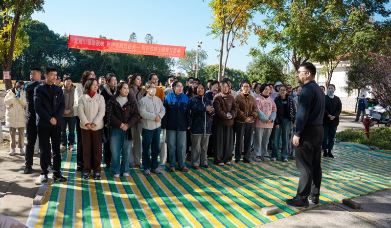 11月19日,材料工程学院党总支联合机关党总支第六党支部在能碳一体化新质农业示范基地开展“党建引领助秋收 躬耕实践显担当”稻谷收割主题党日活动,以实际行动助力粮食生产,强化劳动精神与服务意识。校党委副书记吴丽云出席活动。